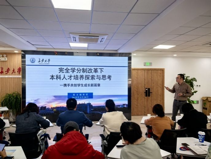 陳永楠重點圍繞“科學認識教務工作、完全學分制改革下的探索與思考、學校教育教學管理制度”三個方面進行系統解讀,深入細致講解了學校實施完全學分制人才培養方案的政策背景、總體目標、保障機制、改革歷程及當前進展,進一步強調實施完全學分制改革的根本要求是以人才培養模式改革為主線,以教育教學管理體制機制改革為動力,以教學支持體系改革為保障,實施本科生學分制和導師制培養,優化學科大類培養和寬口徑專業教育,構建跨學科跨專業人才培養體系,夯實通識教育和創新創業教育。陳永楠結合國內高校教育教學改革和人才培養案例,進一步明確要深層次創新人才培養理念,為學生提供多樣化選擇,拓寬學生的自主選擇空間,明晰專業發展目標定位,凝練專業內涵特色,全面提升學生學習的自主性,全面提升教師教學能力與課程教學質量,全面提升協同機制,助力學校“雙一流”建設,努力培養適應和引領未來發展的卓越人才。