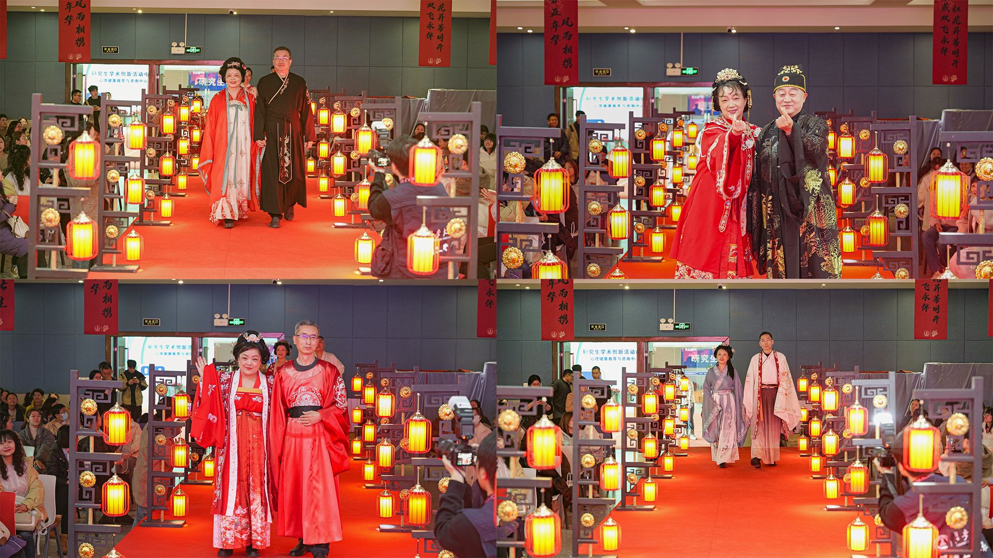 慶典現(xiàn)場,銀婚夫婦們身著盛裝,攜手走過精心布置的紅毯。現(xiàn)場播放了銀婚夫婦們的照片回顧視頻,勾起他們美好的回憶。慶典現(xiàn)場設(shè)置了各種趣味游戲和互動環(huán)節(jié)。在“心有靈犀”游戲中,夫婦們通過默契的配合和回答,展現(xiàn)了他們之間的深厚感情和高度默契;在“愛的表白”環(huán)節(jié)中,丈夫們紛紛向妻子訴說著愛意,把活動推向了浪漫溫情的高潮。活動特別邀請了彭楚清、潘作樞教授作為金婚夫婦代表,分享了兩人68年的愛情故事,并為銀婚夫婦送上祝福。
