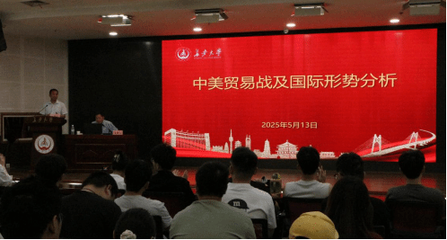 許森教授從歷史背景、發展局勢、矛盾動因等多個維度,對中美經貿博弈與區域安全形勢進行了全面深入剖析。他指出,在經濟領域,美國發動關稅戰,意圖重塑全球貿易體系,但中國憑借完整產業鏈和開放戰略已具備反制能力;在科技領域,美國加緊封鎖,而中國青年科研力量崛起,大國重器頻出,正在突破技術壁壘;面對美國在臺海、南海等地的軍事圍堵,中國以綜合國力為支撐,展現出堅定戰略定力。講座深化了參會師生對中美貿易戰及當前國際局勢的認識理解,有效激發了全體師生的愛國情懷與擔當意識。