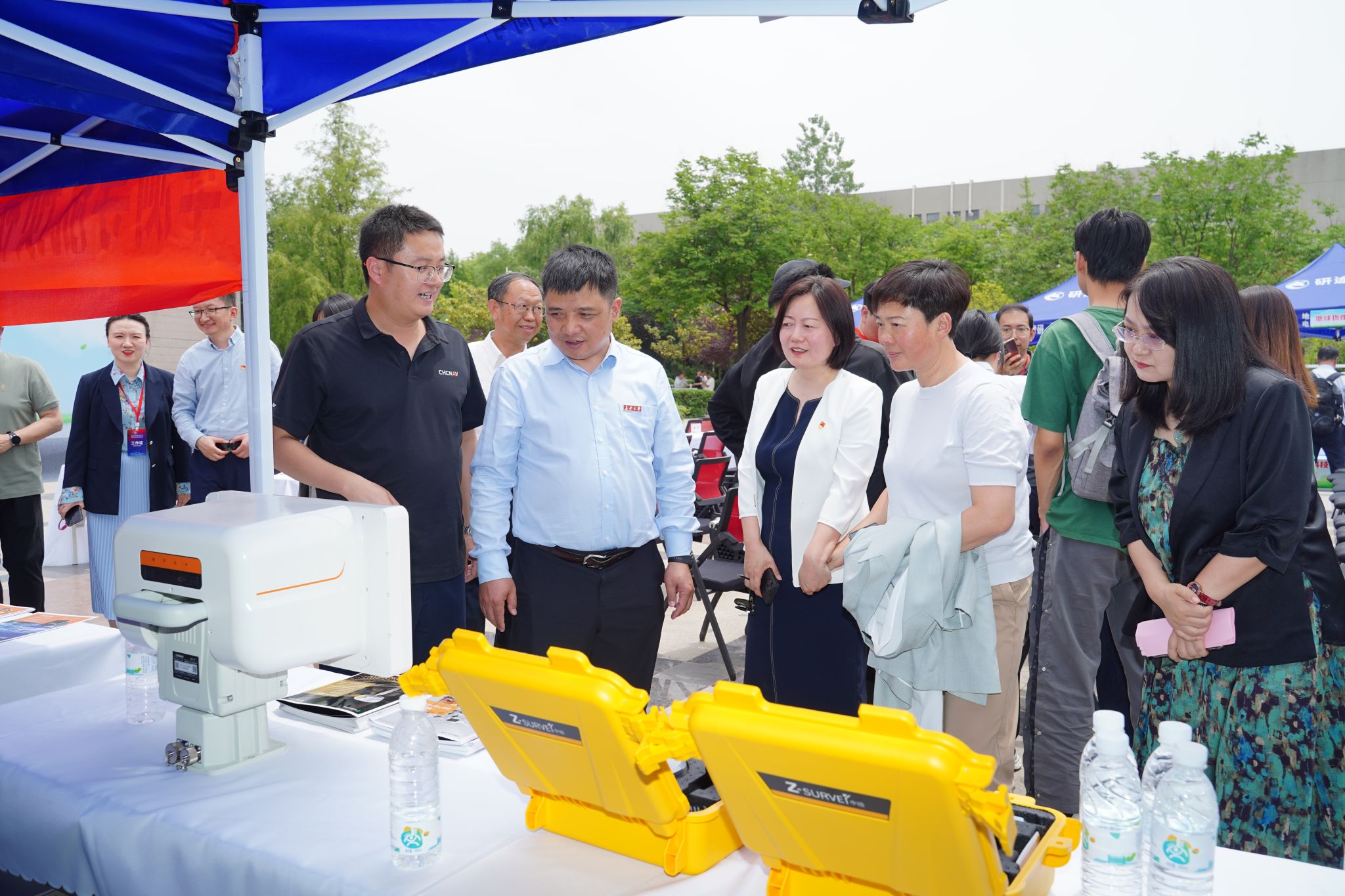 啟動儀式上,西安市應急管理局一級調研員董為民、上海華測導航技術股份有限公司西安公司總經理張宗岳分別致辭;西安西北有色物化探總隊有限公司黨委書記郭文波同志、地測學院黨委書記王樹瑩同志共同揭牌黨建共建單位;聘用12名同學擔任防災減災校園宣傳大使;校企領導共同拉開長安大學地測學院首屆防災減災科技節的序幕。啟動儀式后,師生們參觀了活動的各個展區,現場聆聽了各企業及同學們對自己展出作品的詮釋和解讀。