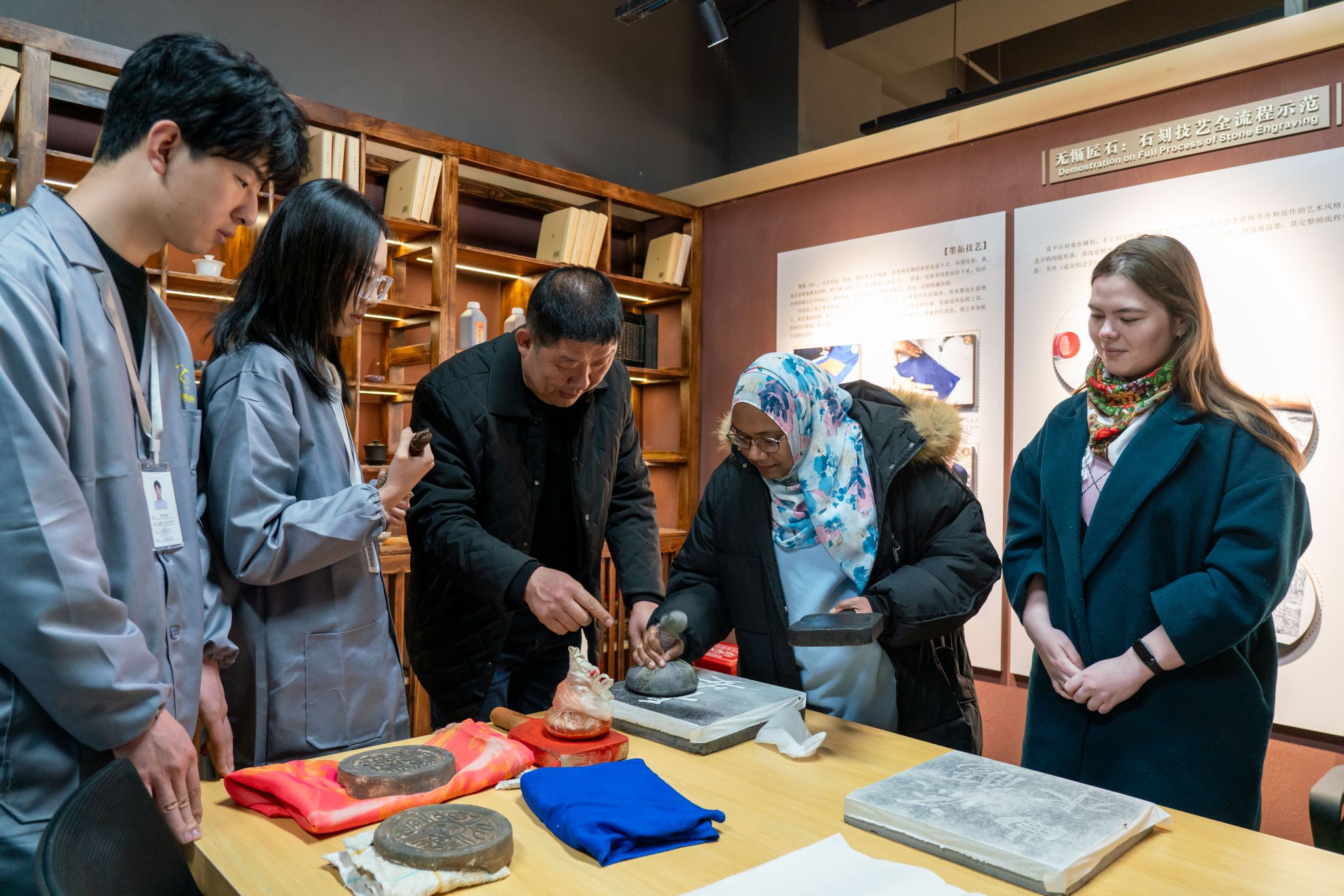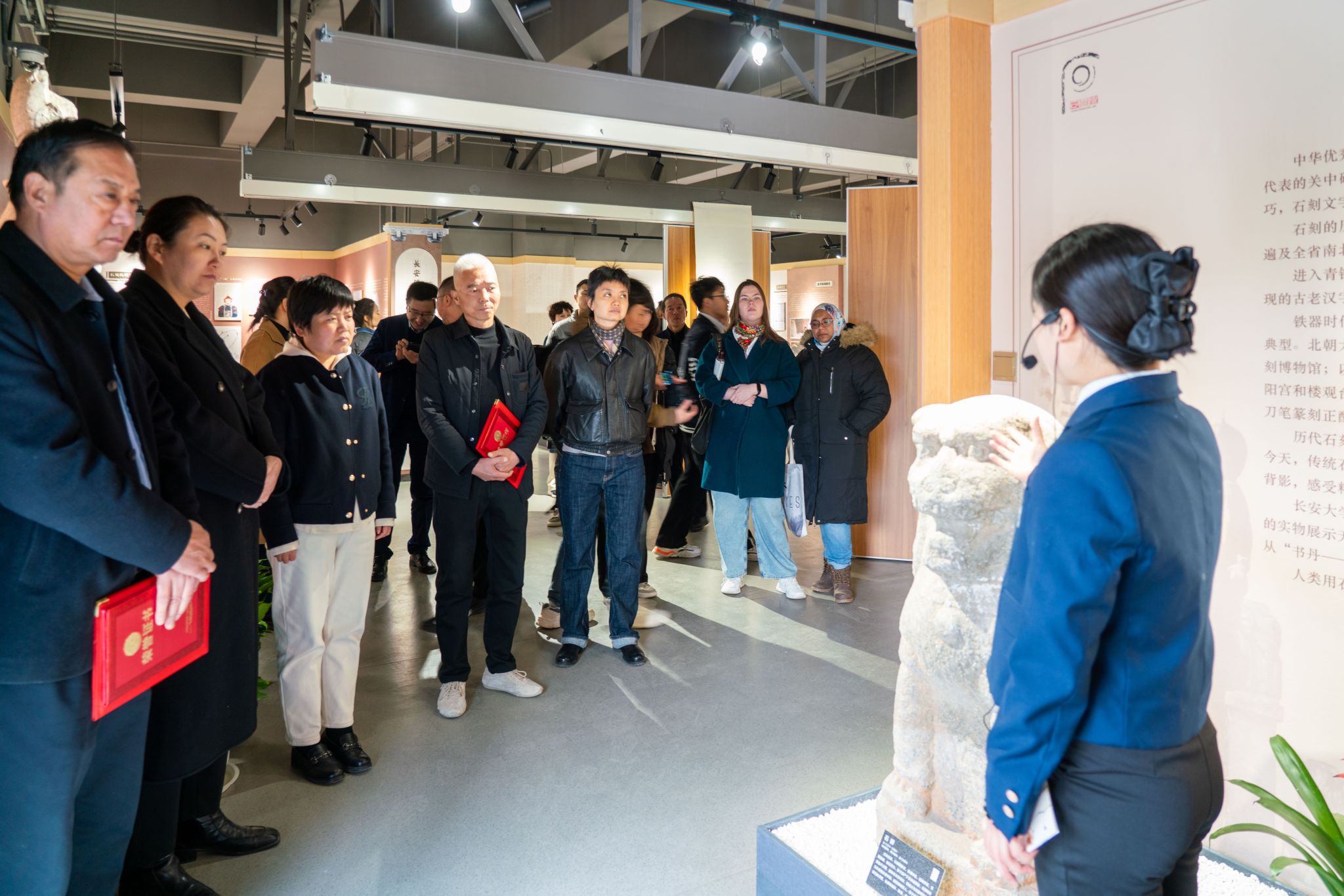 儀式結(jié)束后,嘉賓和師生們?cè)趯W(xué)生講解員的引導(dǎo)下,一同參觀了石刻藝術(shù)館?,F(xiàn)場(chǎng)還開展了拓片、刻字等學(xué)生實(shí)踐活動(dòng),學(xué)生們現(xiàn)場(chǎng)體驗(yàn)了傳統(tǒng)碑刻的藝術(shù)魅力。