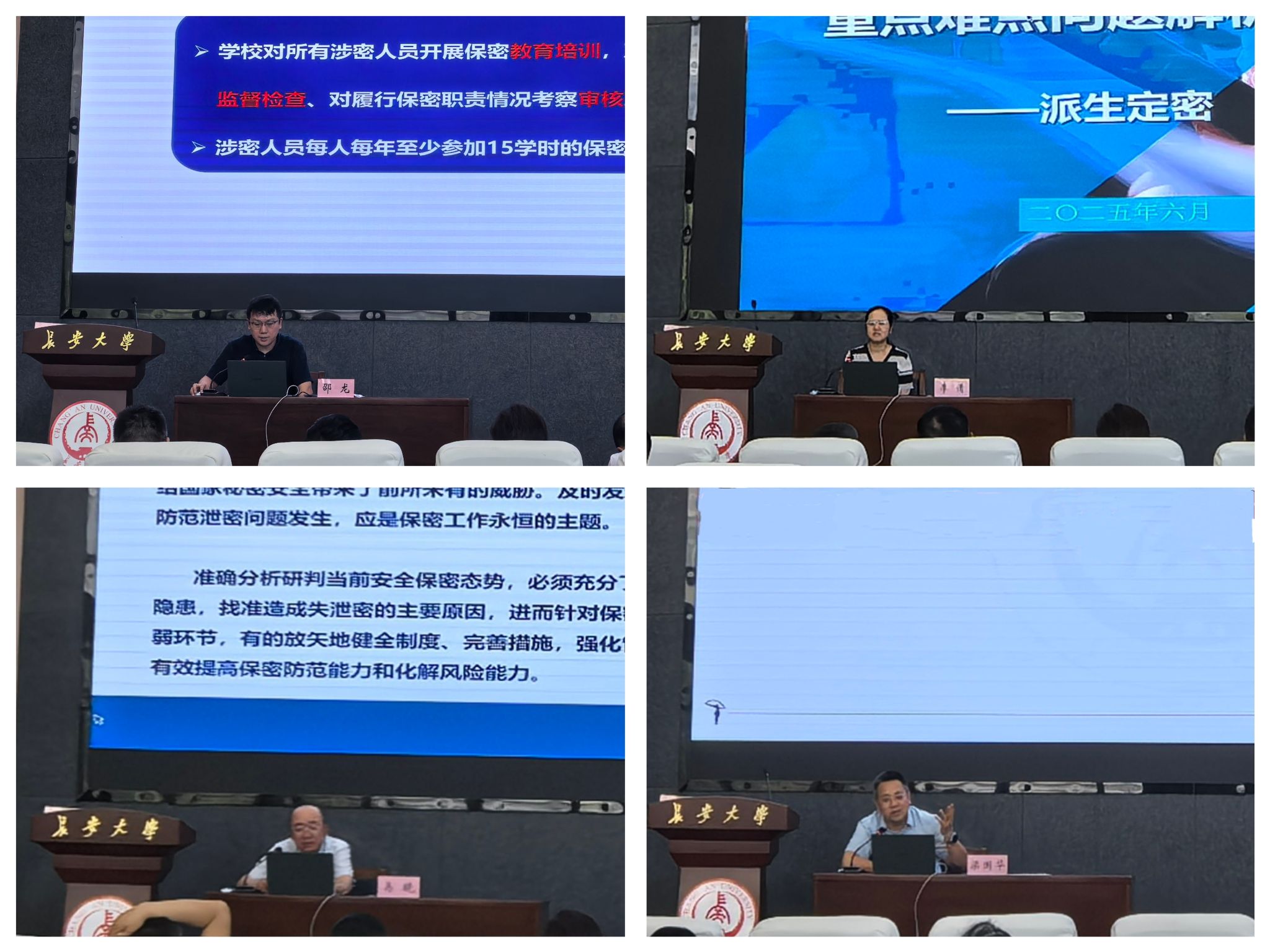 為深入貫徹落實總體國家安全觀,全面提升涉密人員保密意識與專業能力,進一步增強培訓實效,推動學校保密工作高質量發展,根據學校2025年保密教育培訓計劃,結合保密宣傳教育月活動安排,6月5日下午,邀請校外專家、人事處、信網處、科研院項目管理中心等學校相關保密歸口管理部門,圍繞部門業務開展系列專題培訓。培訓由校保密辦公室主任楊銳主持。