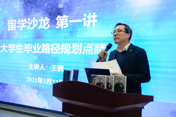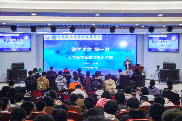 為了系統提升同學們出國交流能力,啟發大家對學習生涯提前做出思考,拓寬看待未來的眼界格局,3月22日,長安都柏林國際交通學院在鴻遠教學樓四樓報告廳舉辦“留學沙龍”系列講座第一講,特邀新東方前途出國項目團隊與同學們進行交流咨詢,陜西分公司英國部金牌規劃師王驍作主題為“大學生畢業路徑規劃點睛”的報告。新東方前途出國助理副總裁、陜西分公司總經理盧一航,學院副院長柏強出席了此次活動。活動由學院黨總支副書記、副院長姚以亮主持。