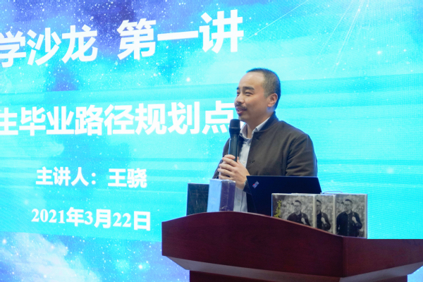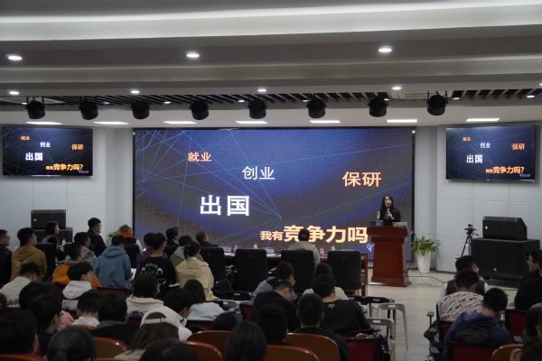 報告環節,王驍以大量數據統計結果和實例,從就業、保考研、創業和留學四個角度,向同學們展示畢業后的發展路徑,以及在本科期間所應做出的準備。王驍指出,本科期間的學業成績作為硬實力的體現對于各項發展路徑都非常重要,但同學們同樣需要提升軟實力才能更好的追逐未來的發展目標。同學們需要根據個人目標,提早在科研項目、論文產出、資格證書、實習經歷等領域積累成果,不斷為自身賦能,提升個人核心競爭力,才能在畢業時交出滿意的答卷。