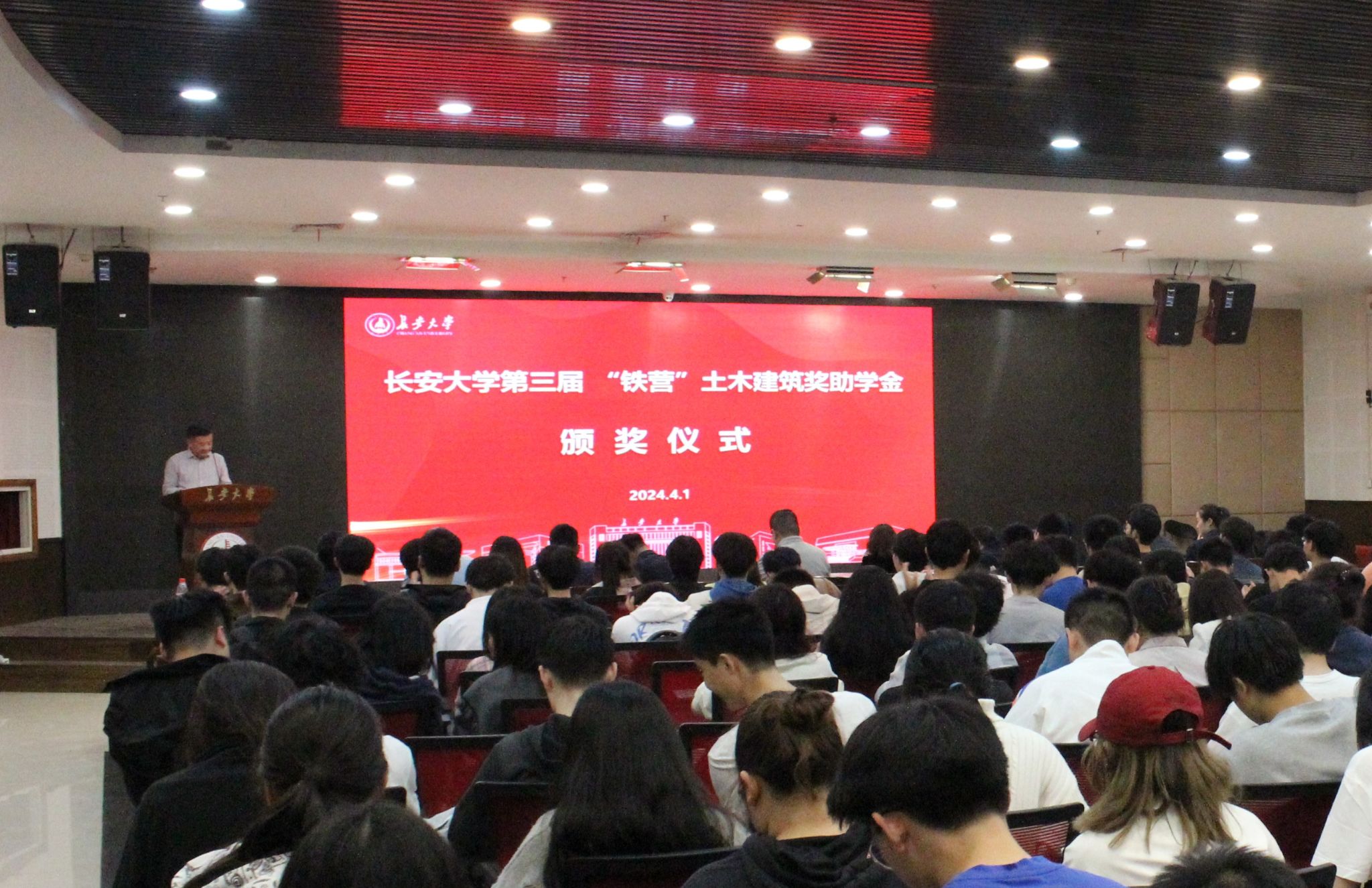 4月1日下午,第三屆長安大學“鐵營”土木建筑獎助學金頒獎儀式在北校區長安文化藝術中心三樓多功能廳舉行。長安大學校友齊鐵營,我校社會合作處處長、教育基金會理事長楊紅斌、思創中心辦公室主任郭云珠、學生資助中心副主任郭海麗,建筑工程學院黨委書記吳濤、院長邢國華,建筑學院正處級組織員申偉、院黨委副書記劉鵬、院黨委副書記孟慶鵬、副院長余侃華出席頒獎儀式。全體獲獎學生、兩院輔導員和學生代表200余人參加頒獎儀式,儀式由建筑學院院長侯全華主持。