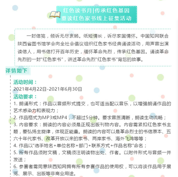 數(shù)據(jù)庫線上活動·知識參與。4月22日,圖書館針對我校師生需求,聯(lián)絡(luò)并推送了諸如“方言源遠·鄉(xiāng)音詠存”—Emerald中國傳統(tǒng)方言鄉(xiāng)音評選活動,“閱讀打卡”線上藏書卡收集活動,學(xué)習(xí)百年黨史線上知識競賽,傳承紅色基因、重讀紅色家書線上征集活動。旨在幫助同學(xué)們重溫黨史輝煌,凝聚奮進力量、熱愛家鄉(xiāng)、弘揚文化。