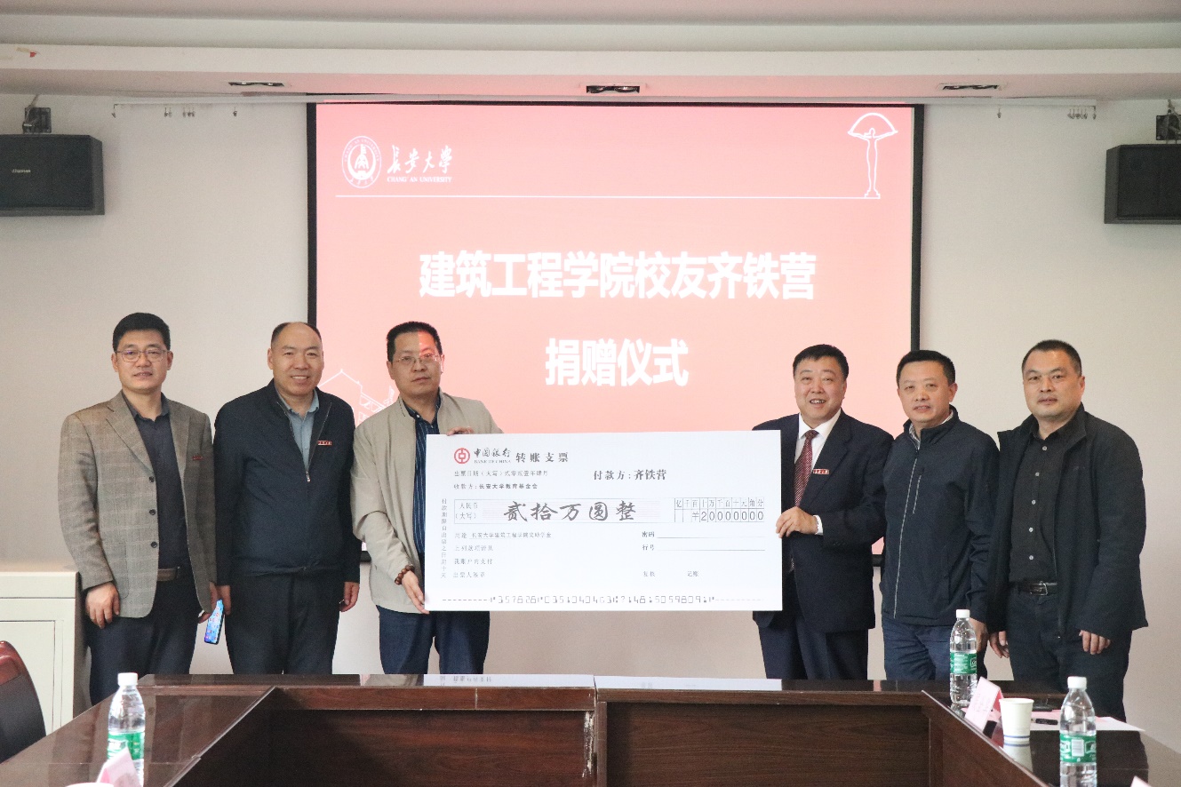 捐贈儀式上,齊鐵營向母校捐款20萬元,設立“長安大學鐵營獎助學金”,主要用于長安大學建筑工程學院和建筑學院在冊的家庭經濟相對困難的品學兼優的學生。侯全華向校友頒發捐贈證書及紀念品。