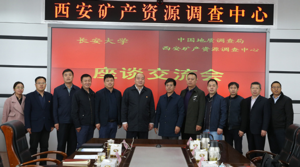 西安礦產資源調查中心副主任高永寶、曹魯剛、門敏康、張江華,副總工程師馬承、魏立勇、徐多勛,辦公室主任張登峰以及相關業務室主任,我校地調院副院長劉會濤、地測學院副院長王利、水環學院副院長李培月、土地學院副院長王曉峰、資源學院教授劉云華、地調院院辦主任趙洋洋參加了調研座談。