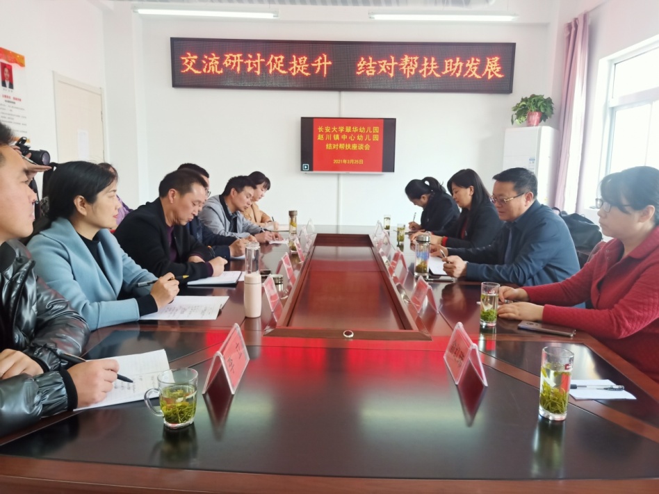 3月25日至26日長安大學后勤管理處翠華幼兒園副園長王珩帶領幫扶團隊一行4人,赴商南縣趙川鎮中心幼兒園開展教育扶貧,幫助教師專業能力提升。縣委常委、副縣長黃飛、縣科教體局黨建指導中心主任徐前升、趙川鎮黨政辦主任楊軍、學前教育股股長單慧勇、縣教育教學研究室學前教育教研員陳敏及趙川鎮中心幼兒園,十里坪鎮中心幼兒園全體教師參加了此次活動。