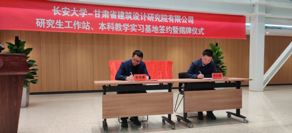 為進一步落實學(xué)校應(yīng)用型人才培養(yǎng)計劃,深化校企合作,扎實推進學(xué)科與專業(yè)建設(shè),加強校外實習(xí)及就業(yè)基地建設(shè),3月19日,建筑學(xué)院院長侯全華、武聯(lián)教授、副院長劉啟波、劉偉副教授一行,赴蘭州甘肅省建筑設(shè)計研究院有限公司參觀走訪及深入座談,舉行了“長安大學(xué)—甘肅省建筑設(shè)計研究院研究生工作站、本科教學(xué)實習(xí)基地簽約暨揭牌”儀式。甘肅省建筑設(shè)計研究院有限公司董事長米宏圖、黨委書記李向軍、總經(jīng)理曹慶、監(jiān)事會主席張光潔、總建筑師馮志濤、總工程師張舉濤,以及學(xué)院甘肅部分校友出席了儀式。