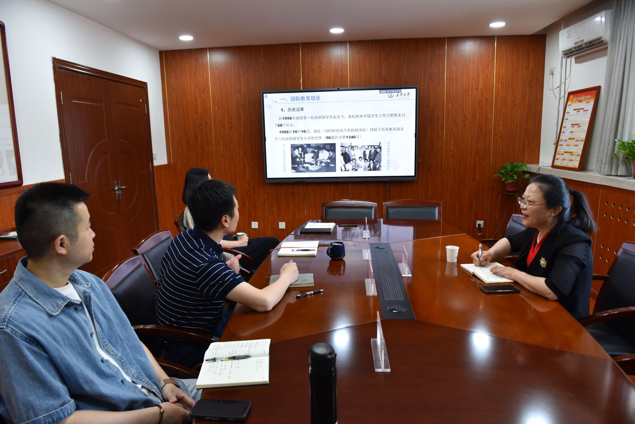 5月23日,浙江大學(xué)國際教育學(xué)院常務(wù)副院長王玉芬到我校國際教育學(xué)院調(diào)研交流。國際教育學(xué)院副院長呂衛(wèi)東陪同調(diào)研。學(xué)院辦公室、國際學(xué)生工作辦公室、國際學(xué)生招生辦公室負(fù)責(zé)人參加座談會。