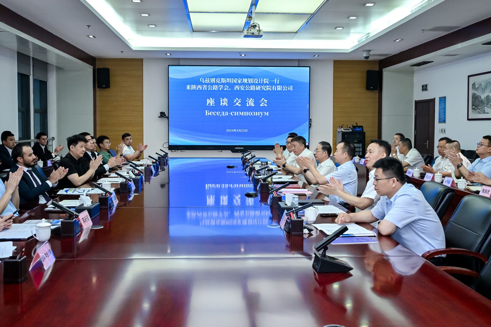 5月23日,長安大學協同烏茲別克斯坦國家規劃設計院院長首席顧問科西莫夫·舒赫拉特貝克高級官員一行到陜西省公路學會及西安公路研究院有限公司開展專業實踐活動及座談交流。 陜西省公路學會理事長楊育生、陜西省公路學會秘書長韓瑞民,長安大學國際教育學院院長、中國-中亞五國交通基礎建設領域人才培養聯盟(以下簡稱“聯盟”)秘書處辦公室主任張偉,西安公路研究院有限公司董事長李景超以及總經理姬建崗出席座談會。聯盟秘書處辦公室相關負責人、陜西省公路學會秘書處領導、西安公路研究院有關領導和部門領導參加會議。會議由李景超主持。