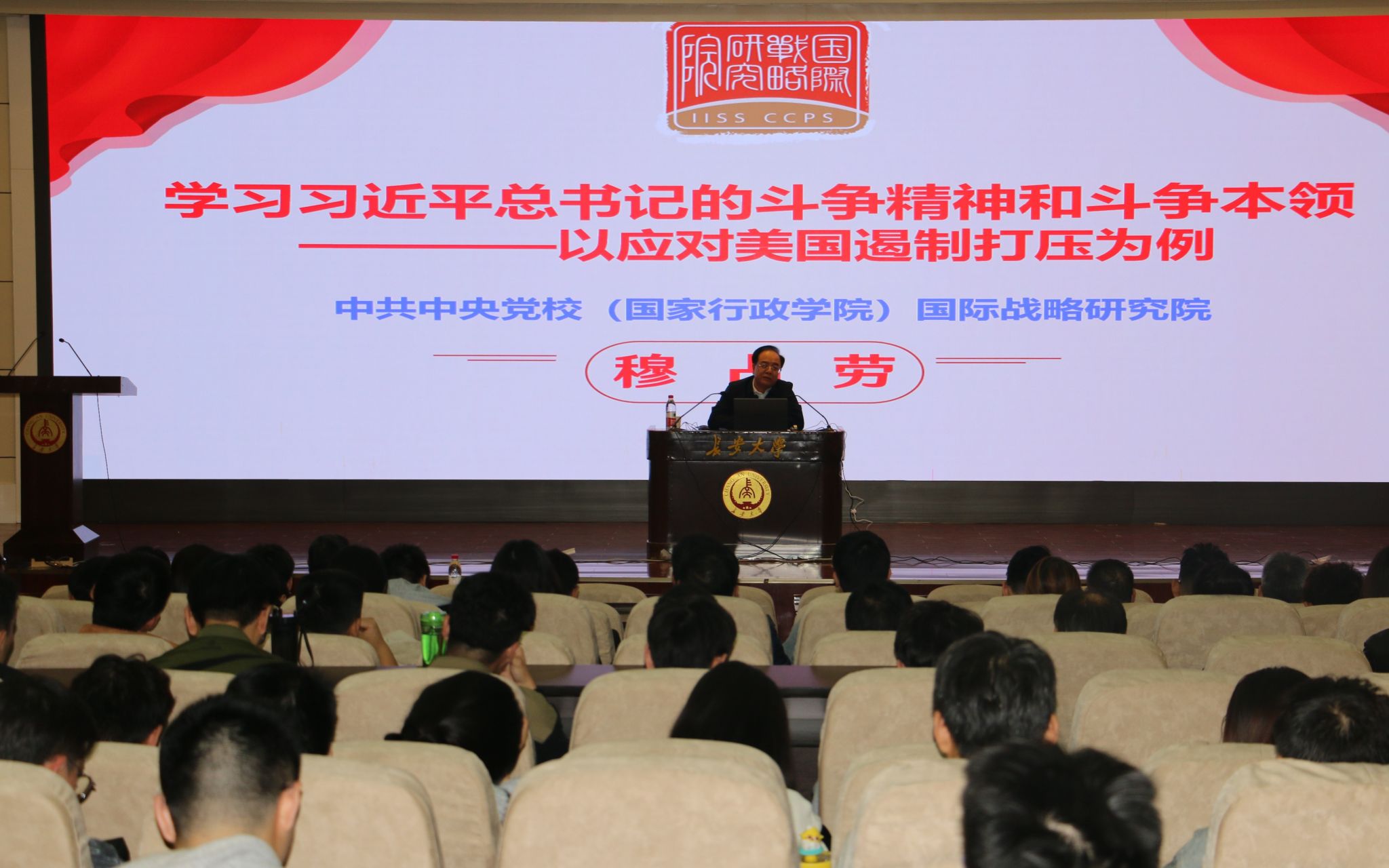 10月12日下午,公路學院在南校區北院學術交流中心報告廳舉行理論學習中心組(擴大)會議,邀請中共中央黨校(國家行政學院)國際戰略研究院穆占勞教授作《學習習近平總書記斗爭精神和斗爭本領》的專題輔導報告。學院黨委理論學習中心組成員、全體教工黨員和部分學生黨員代表共300余人參加學習。輔導報告由學院黨委書記汪海年主持。
