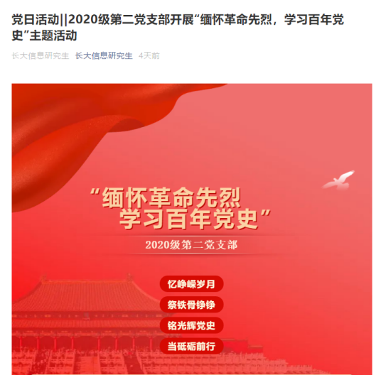 為學習貫徹習近平總書記在黨史學習教育動員大會上的重要講話精神,按照學校相關部署要求,信息工程學院黨委緊緊圍繞學懂弄通做實黨的創新理論,堅持把學習習近平新時代中國特色社會主義思想貫穿始終,以上率下、上下結合,切實做到學史明理、學史增信、學史崇德、學史力行。