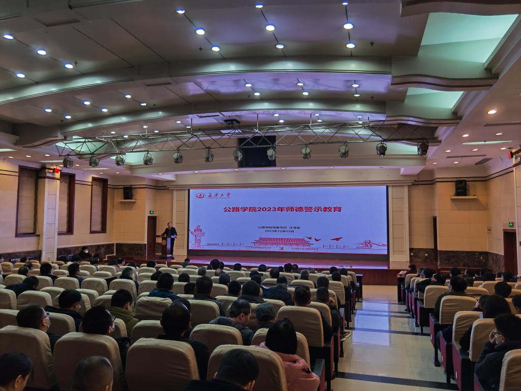 12月11日,公路學院在南校區北院學術交流中心報告廳召開師德警示教育大會。會議由學院黨委副書記、副院長姚以亮主持,學院全體教職工參加會議。