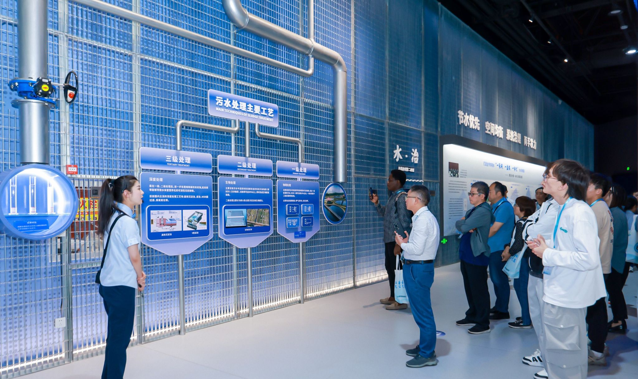 活動(dòng)第二站參觀了西安市第三污水處理廠地下式運(yùn)行系統(tǒng)、西安水務(wù)·再生水展館。展館通過(guò)藝術(shù)視頻、圖文展板和實(shí)物模型,呈現(xiàn)了工業(yè)革命以來(lái)水污染帶來(lái)的災(zāi)害和我國(guó)在水污染防治方面做出的主要成績(jī),同時(shí)生動(dòng)展示了西安市污水處理行業(yè)起源誕生、探索創(chuàng)業(yè)、艱苦奮斗、蓬勃發(fā)展的歷程,西安市污水處理行業(yè)的格局變化,以及在水污染防治、水環(huán)境治理、再生水利用、污泥處置等方面的工作成效,讓師生切身體會(huì)到了水資源保護(hù)的重要性。