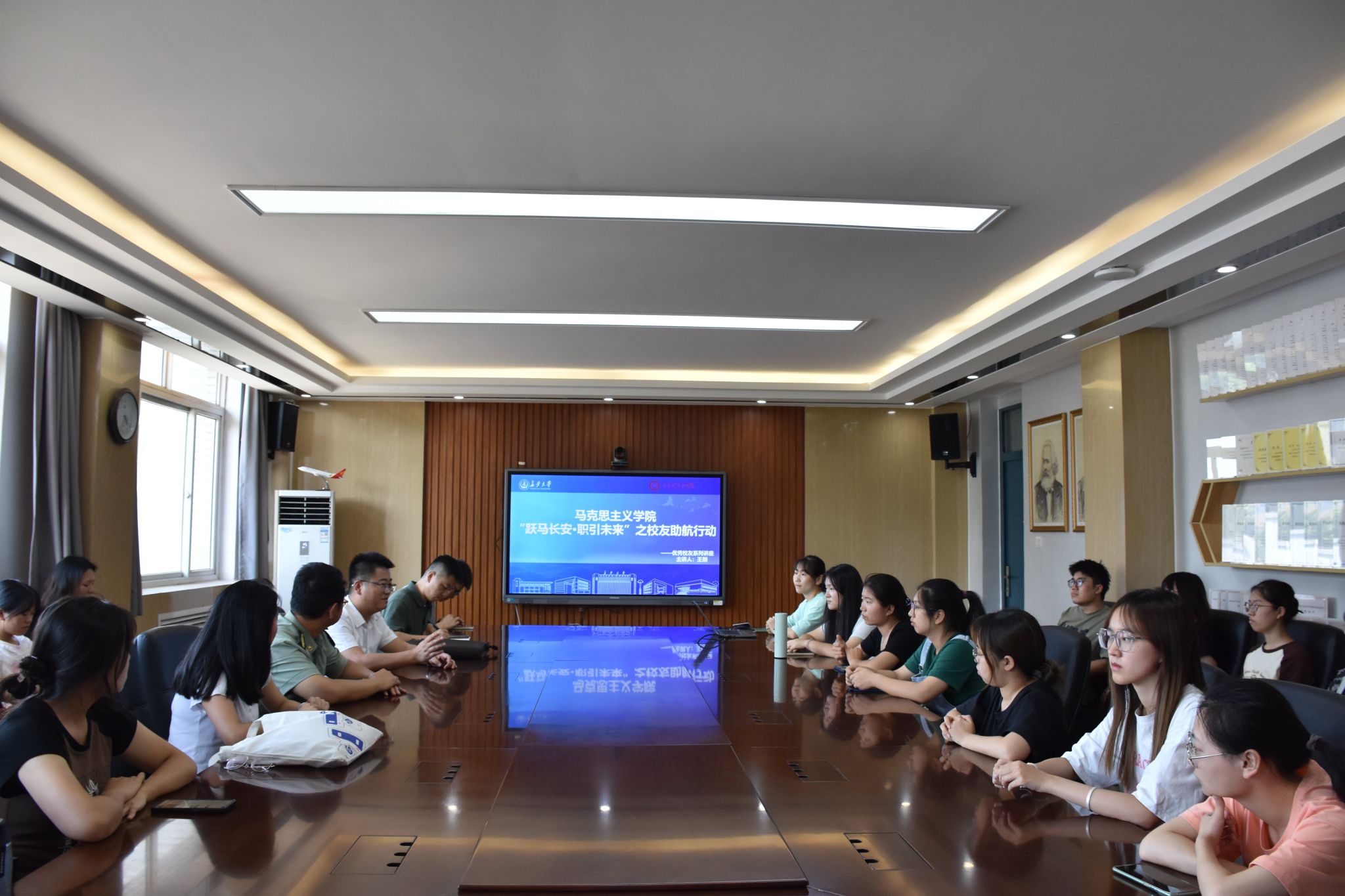 9月6日下午,馬克思主義學院于基礎樓510會議室舉辦“躍馬長安·職引未來”優秀校友經驗交流分享沙龍,學院2014屆優秀校友、中交一公局集團人力資源部總經理助理王朗受邀分享成長、就業經驗。院團委書記楊帆、研究生輔導員張子婧和學生代表參加分享會。會議由院黨委副書記馮迪主持。