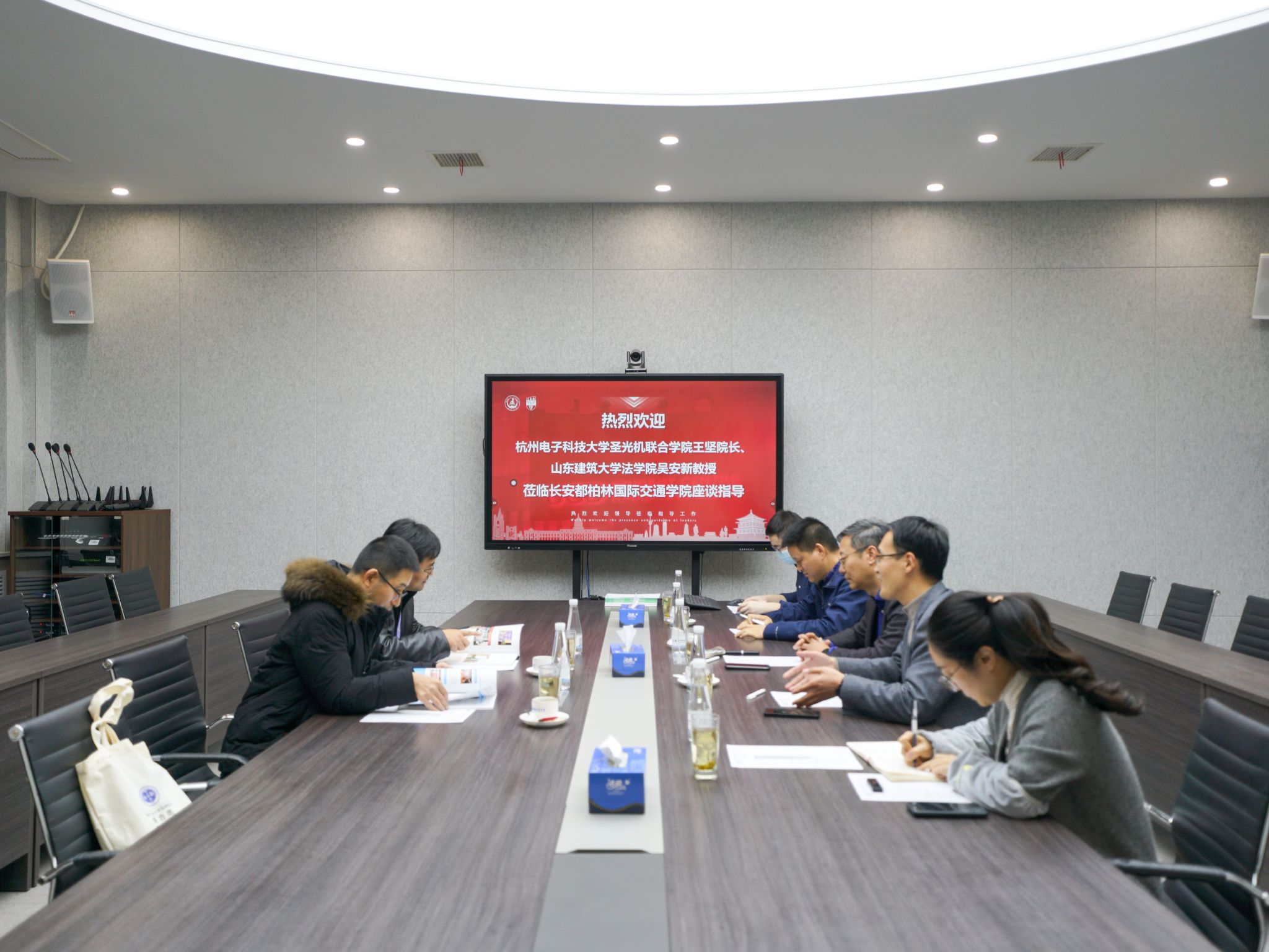 11月15日下午,杭州電子科技大學圣光機聯合學院院長王堅、山東建筑大學法學院教授吳安新到長安都柏林國際交通學院,就中外合作辦學機構人才培養及提質增效舉措進行座談交流。學院院長汪海年、黨總支書記趙亮、副院長柏強及綜合辦公室相關工作人員參加座談。座談會由趙亮主持。