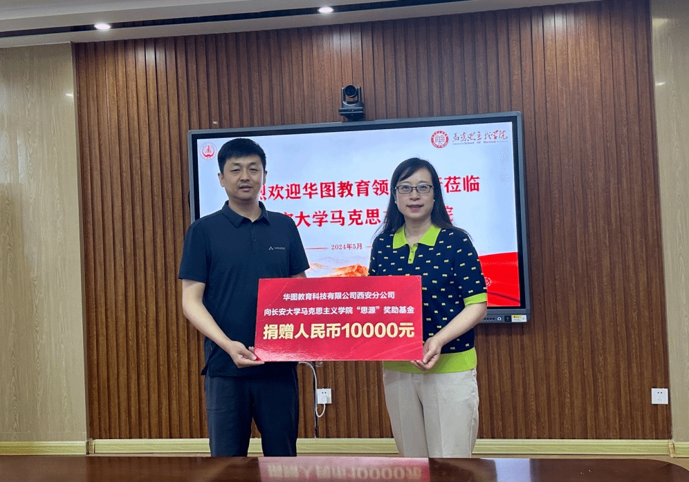 捐贈儀式環節,王小棟代表華圖教育向馬克思主義學院“思源”獎助基金捐贈1萬元,李小芹代表學院接收捐贈。