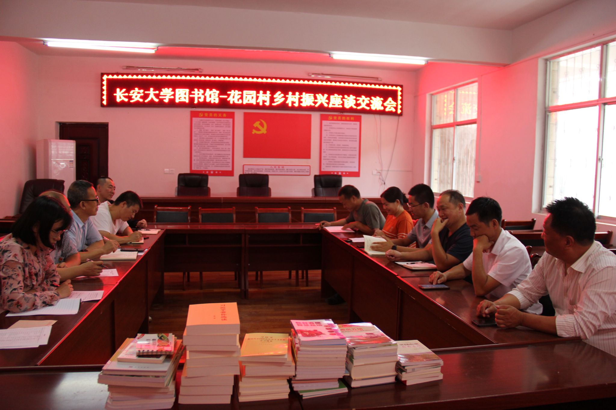 花園村駐村第一書記王永輝詳細介紹了2018年以來長安大學在村幫扶成效、集體經濟產業發展、基礎設施建設和精神文明建設等相關情況,聚焦花園村農家書屋的實際需求,提出了可行性的意見和建議。