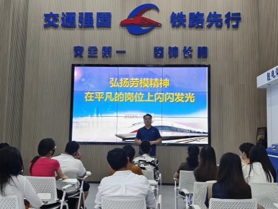在西安高鐵基礎設施段講解員帶領下,同學們前往西安高鐵基礎設施段企業形象展示室進行參觀學習。通過對企業大事記、廉政建設、榮譽之光等區域觀摩學習,中外大學生們全面了解了企業發展歷程,感受中國高鐵的現代化發展和高鐵人的奮斗歷程。