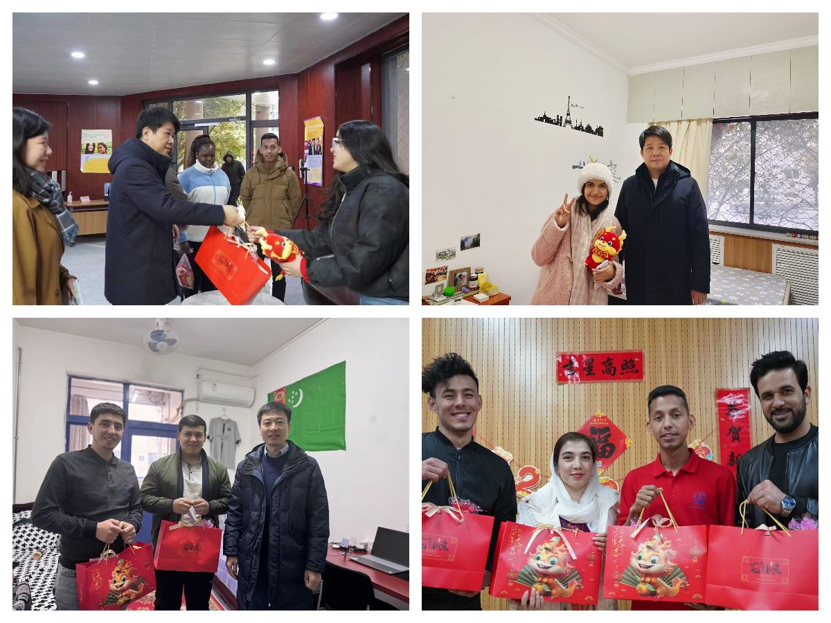 2月2日,正值北方小年,國際教育學(xué)院院長張偉,副院長呂衛(wèi)東、孫林分別帶隊走訪慰問南校區(qū)北院國際學(xué)生公寓、北校區(qū)國際學(xué)生公寓和育才路國際學(xué)生公寓的在校國際學(xué)生和物業(yè)值班人員,向他們致以節(jié)日問候,送上新春祝福。
