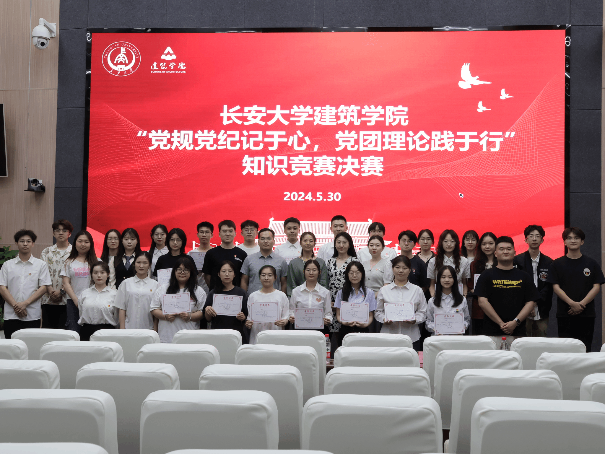 為深入學習習近平新時代中國特色社會主義思想,貫徹落實黨的二十大精神,貫徹落實黨紀學習教育的任務要求,加強新時代廉潔文化建設,引導廣大黨員重溫中國共產黨的光輝奮斗歷程,5月30日,長安大學建筑學院在北校區師生服務大廳二層報告廳舉辦“黨規黨紀記于心,黨團理論踐于行”知識競賽決賽。建筑學院黨委副書記、紀委書記、副院長馮鵑,團委書記申一彤、各年級輔導員以及全體本科生黨員參加。比賽由第四黨支部本科生黨員殷嘉旋主持。