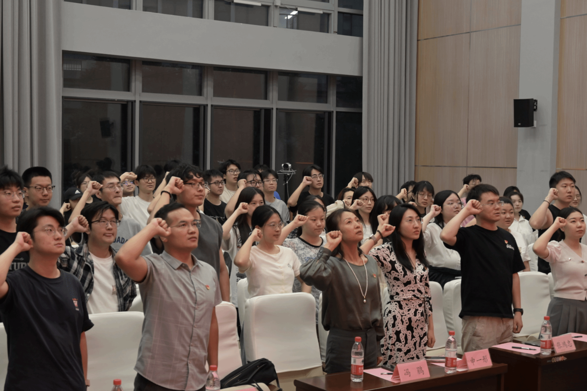 建筑學院老師為獲獎隊伍頒獎,獲得一等獎隊伍的黨員代表帶領全體黨員重溫入黨誓詞。