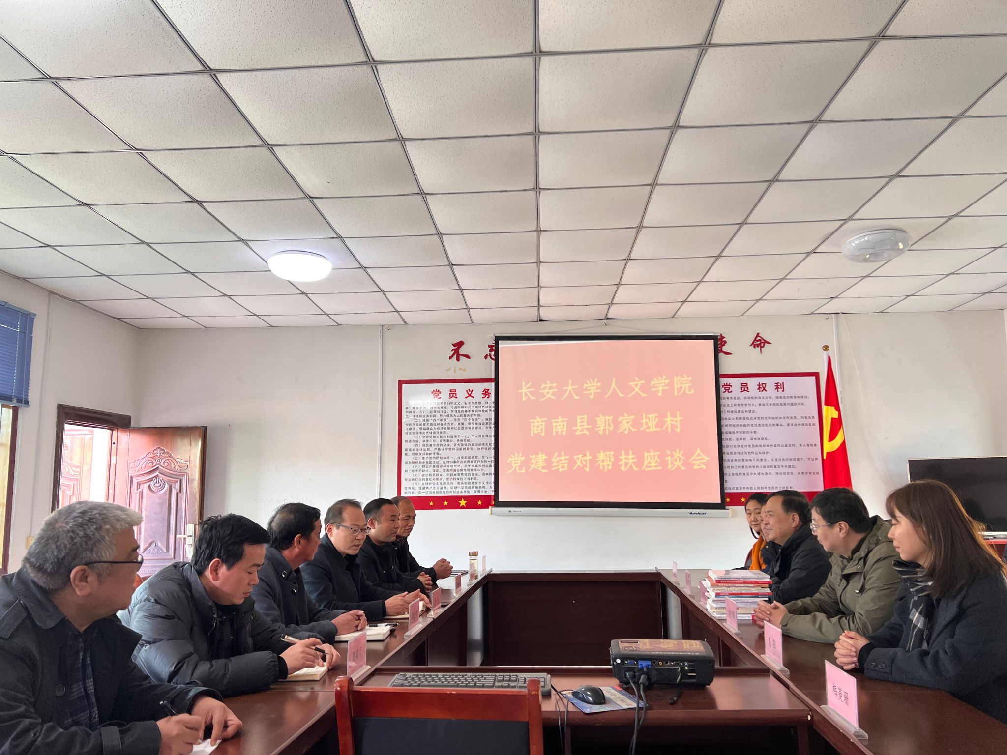 12月7日,人文學(xué)院黨委書記杜智民帶隊(duì),一行六人赴商南縣試馬鎮(zhèn)郭家埡村開展黨建結(jié)對(duì)幫扶工作。商南縣副縣長馬飛,試馬鎮(zhèn)武裝部長李榮林、副鎮(zhèn)長何顯芳,郭家埡村黨支部書記吳振華參加活動(dòng)。