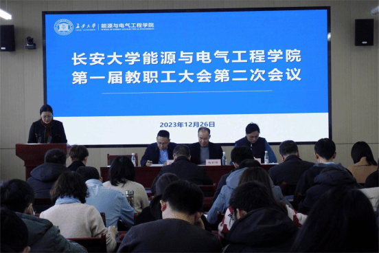 12月26日,能電學院在北校區明德園扶輪大廈學術報告廳召開一屆二次教職工大會。校工會副主席楊利鋒出席會議,能電學院全體教職工參加會議。會議由院工會主席李斌主持。
