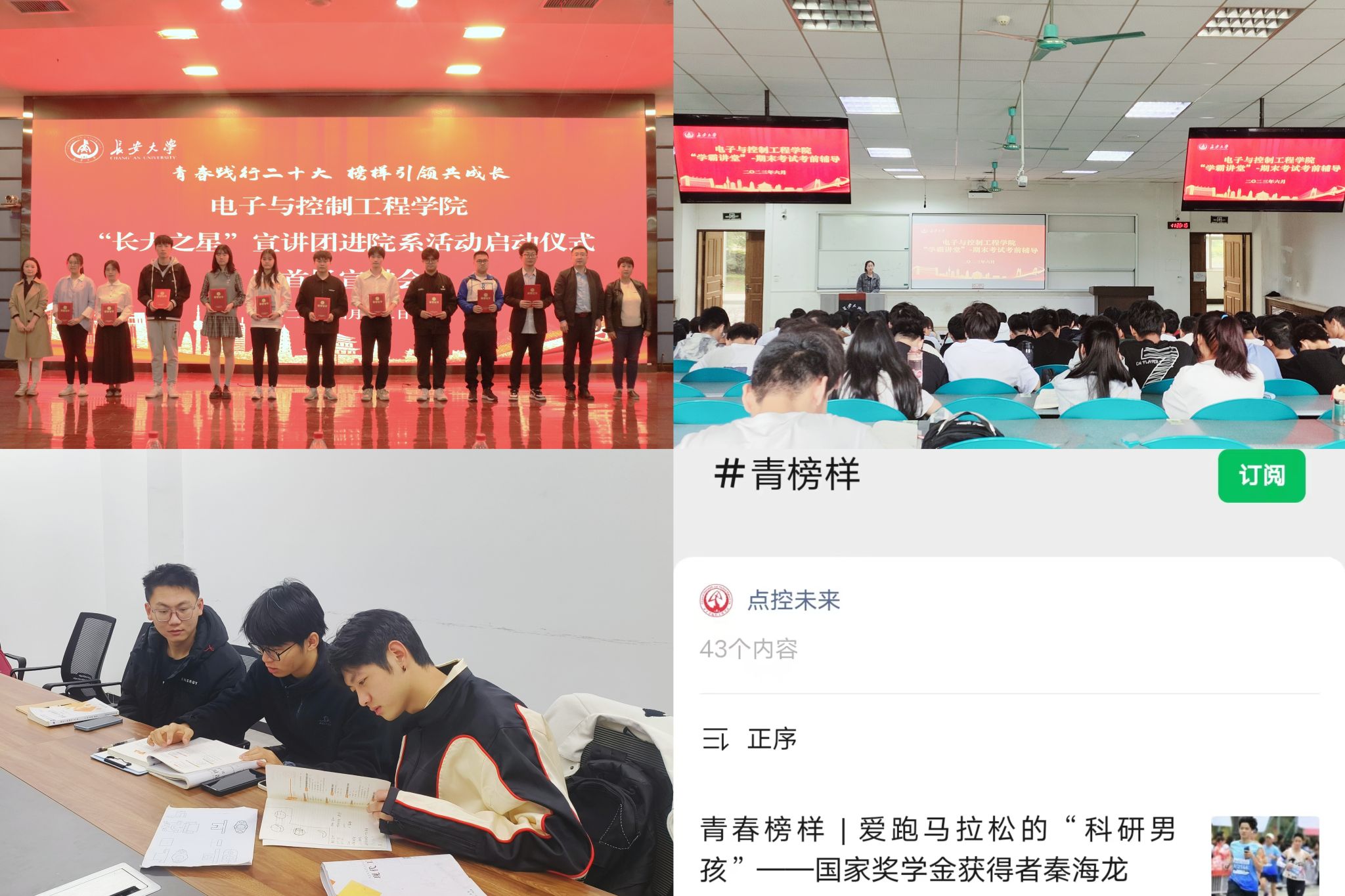 堅持典型示范,發揮榜樣“引領力”。堅持培育、挖掘、選樹、宣傳先進青年典型有機銜接。注重朋輩幫扶,學院選聘119名學業幫扶志愿者,且符合條件的學生黨員全部參與,共開展結對學業幫扶23次,開展經驗分享會、“學霸講堂”“電控青年說”“幫扶晚自習”等特色活動30余場;講好榜樣故事,學院微信公眾號“點控未來”推出“青春榜樣”風采展43期,以先進典型引領學風建設“風向標”;“點控未來”入選“高校思想政治工作200個最受歡迎公眾號”。