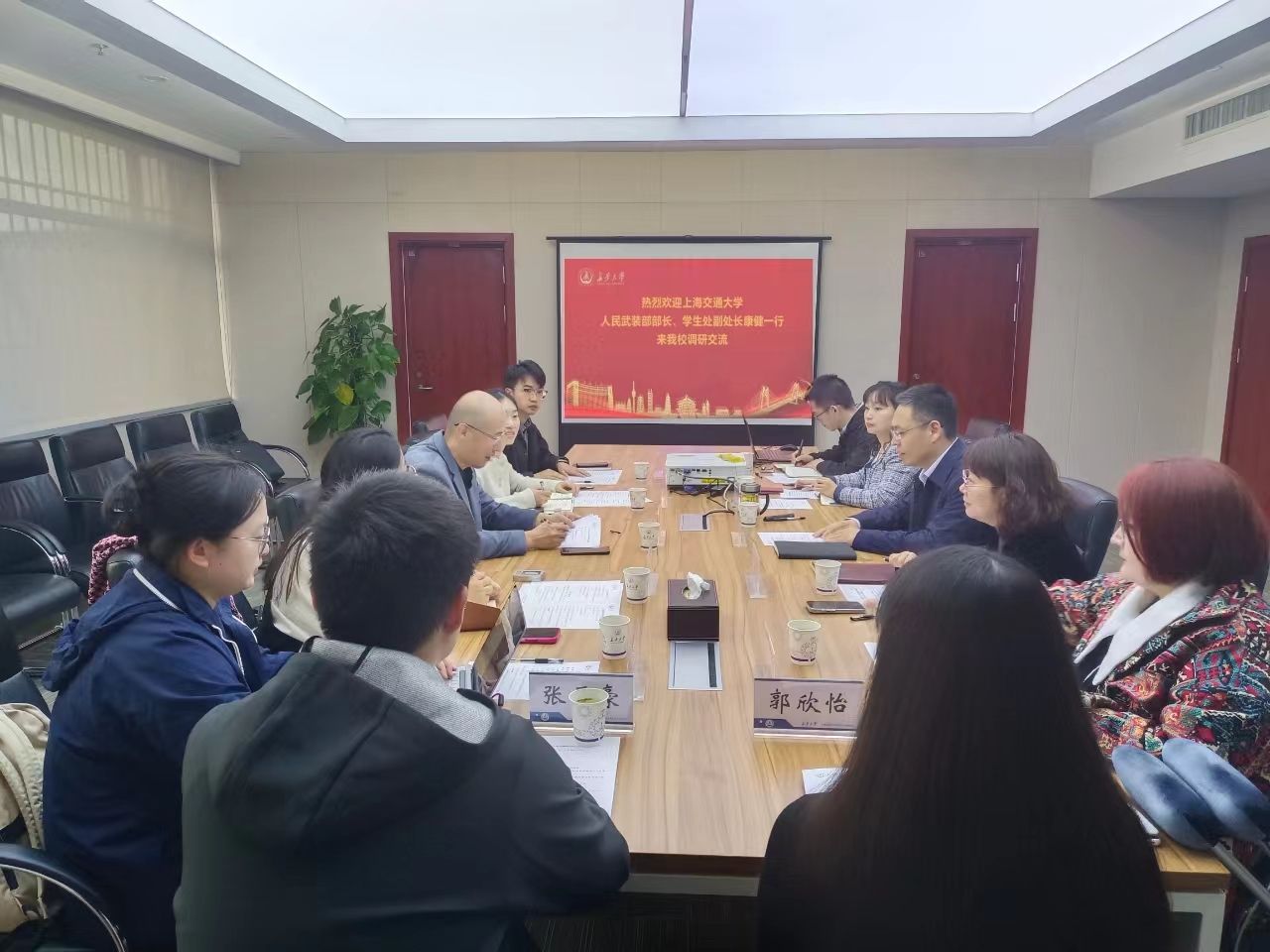 4月2日上午,上海交通大學人民武裝部部長、學生處副處長康健一行6人來校調研,我校學生工作部(學生處)相關負責人參加會議。會議由學生工作部(學生處)、武裝部部長姬國斌主持。