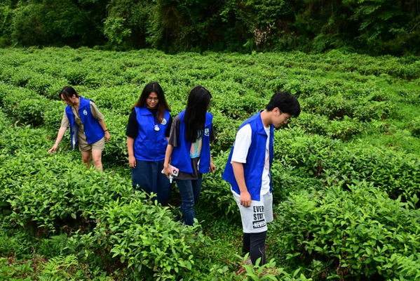 實(shí)踐隊(duì)員實(shí)地考察茶葉種植情況