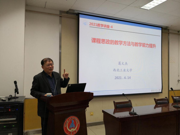 4月14日下午,由理學(xué)院主辦的長(zhǎng)安大學(xué)70周年校慶系列講座暨2021年理學(xué)院課程思政專題報(bào)告會(huì)在南校區(qū)北院交通科技大廈602室舉辦。國(guó)家教學(xué)名師、西北工業(yè)大學(xué)葛文杰教授作了題為“課程思政的教學(xué)方法與教學(xué)能力提升”的報(bào)告,本次報(bào)告會(huì)由理學(xué)院副院長(zhǎng)商澤進(jìn)主持,理學(xué)院院長(zhǎng)宋學(xué)力出席會(huì)議,學(xué)院80余名教師參加了此次報(bào)告會(huì)。