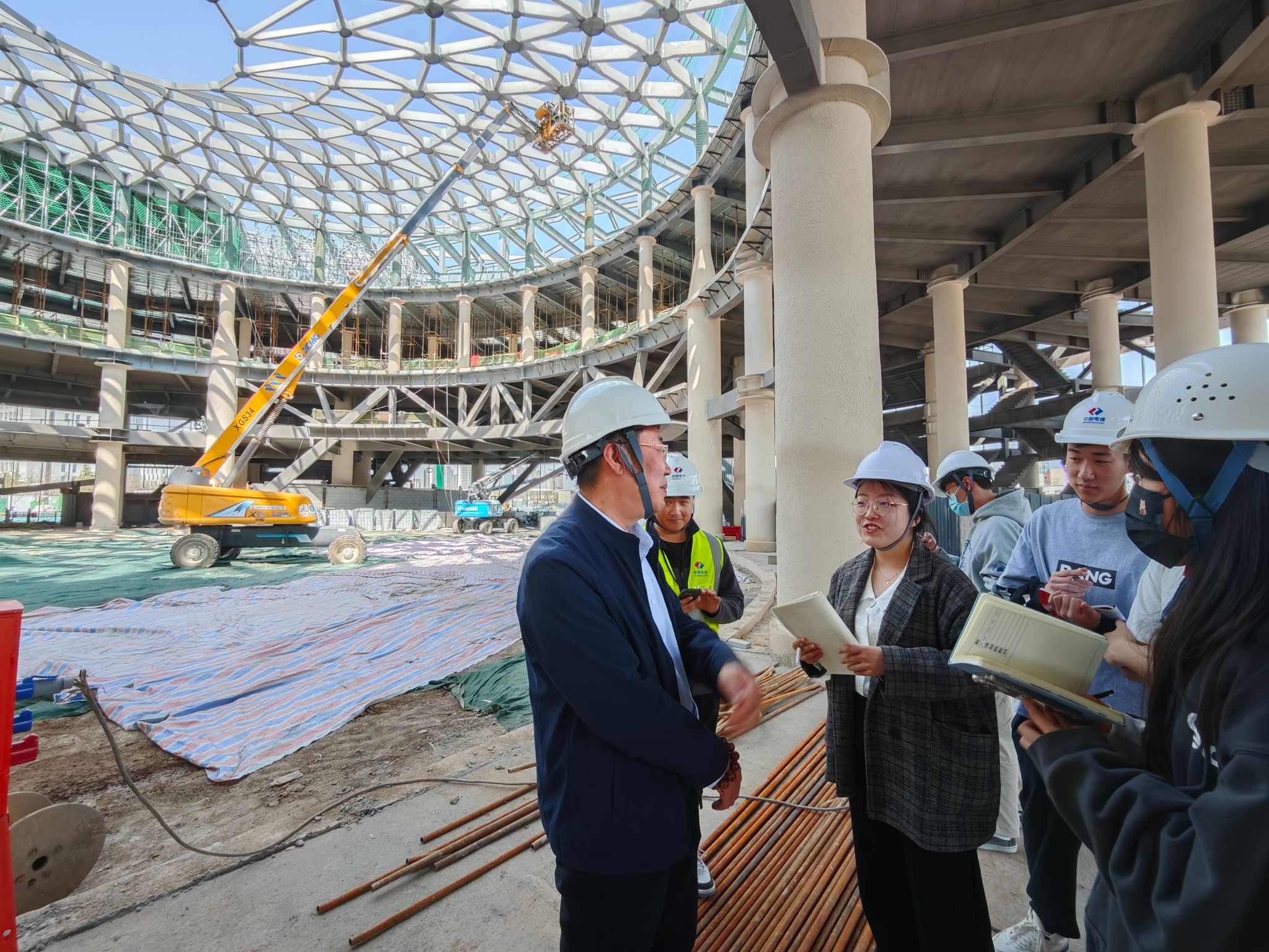 學生團隊成員前往西部智能創(chuàng)新港高新技術孵化器建設項目施工現(xiàn)場參觀學習,在施工單位中國水電三局總工程師和咸陽項目技術負責人的講解下,同學們了解到現(xiàn)代化的提升設備使該項目標志性的玻璃穹頂?shù)靡詫崿F(xiàn),無人機航拍和實時監(jiān)測技術守護著施工現(xiàn)場的環(huán)境安全,感悟到現(xiàn)代科技如何推動施工行業(yè)的發(fā)展,切實體會到了現(xiàn)代化科技為傳統(tǒng)行業(yè)注入發(fā)展動能,也為復雜的城市管理提供了強大的技術支持。