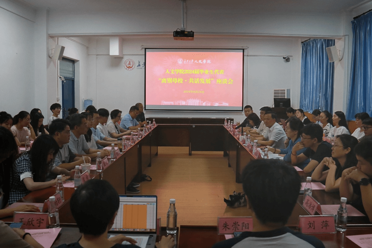 6月24日下午,人文學院在南校區北院基礎樓428會議室召開“離別母校·共話發展”2024屆畢業生代表座談會。學院黨政領導、各系(學科)教師代表、畢業班輔導員及學生代表等40余人參加會議。會議由學院黨委書記何紅娟主持。