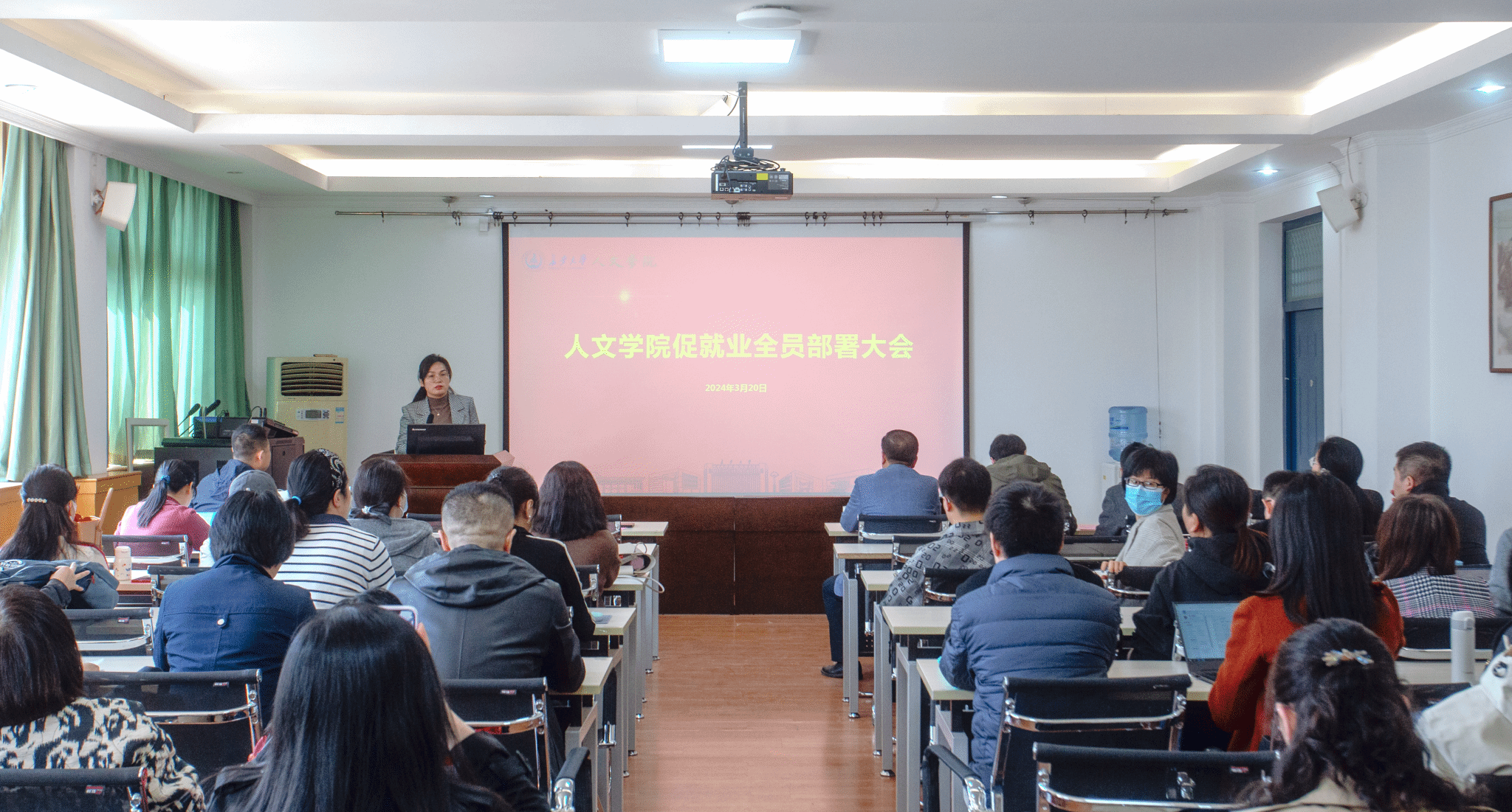為深入貫徹落實教育部、省教育廳和學校關于2024屆高校畢業生就業工作會議精神和要求,3月20日,人文學院在南校區基礎部樓412學術報告廳召開促就業全員部署大會。學院全體教職工參加會議。會議由學院黨委書記何紅娟主持。