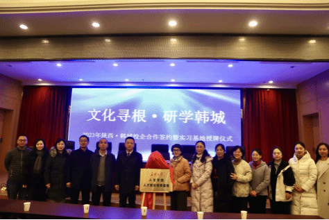 為提高人才培養(yǎng)質(zhì)量,提升實踐育才能力,11月25日,人文學院與陜文投韓城公司人才聯(lián)合培養(yǎng)基地簽約掛牌儀式在陜文投韓城公司實踐基地舉行。人文學院工會主席孫希娟、中文系主任陳熙熙,陜文投韓城公司總經(jīng)理田小平、副總經(jīng)理王社龍,學院教師代表及2022級、2023級全體同學參加儀式。