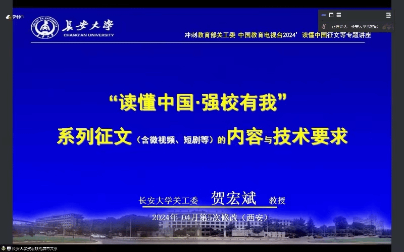 4月11日晚,我校關工委組織召開了“讀懂中國·強校有我”活動線上專題培訓會,離退休處黨總支書記、校關工委常務副主任戴宏,離退休處黨總支副書記、校關工委辦公室主任馮鵑及參賽學生參加會議。校關工委副主任賀宏斌教授作題為《“讀懂中國·強校有我”系列征文的內容與技術要求》專題講座。會議由人文學院黨委副書記、關工委副主任王東主持。