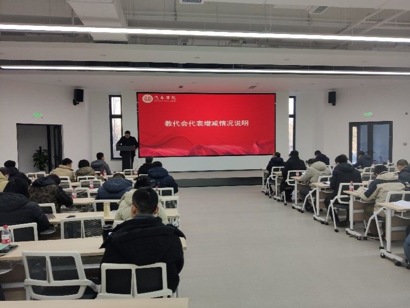 12月25日下午,汽車學院七屆三次教職工代表大會在交通運輸及智能裝備創新平臺2號樓101室召開。學院57名代表參加會議,會議由學院工會主席高揚主持。