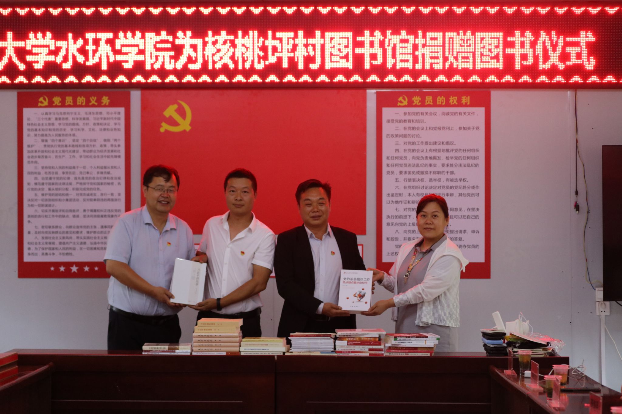 會上舉行談了圖書捐贈儀式。張騫文和荊琳代表水環學院黨委向核桃坪村圖書館捐贈黨紀學習教育的圖書60余套,此次捐贈是學院黨委組織的第三次捐贈圖書活動,截止目前總計向村里捐贈圖書600余套,持續充實村圖書館的圖文資料,不斷豐富村民文化生活。
