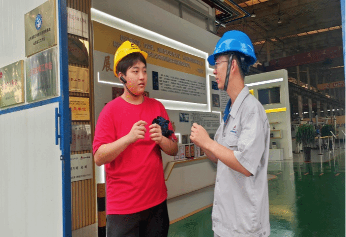 工程師向隊(duì)員介紹車間技改項(xiàng)目