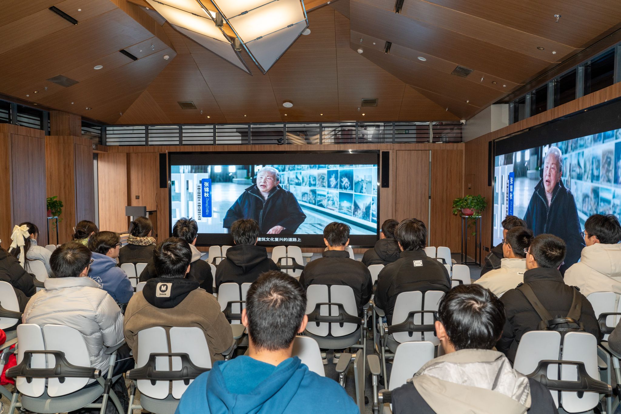 同學們參觀了張錦秋院士館,瞻仰張錦秋院士在建筑領域的杰出貢獻,深切感受張錦秋院士對建筑事業的執著與熱愛,也對中建西北院在科技研究方面的不懈追求有了更深刻的理解。參觀后,師生們集中觀看了中建西北院宣傳片,了解公司的發展歷程、核心價值觀,張錦秋院士的設計理念以及公司未來發展規劃。