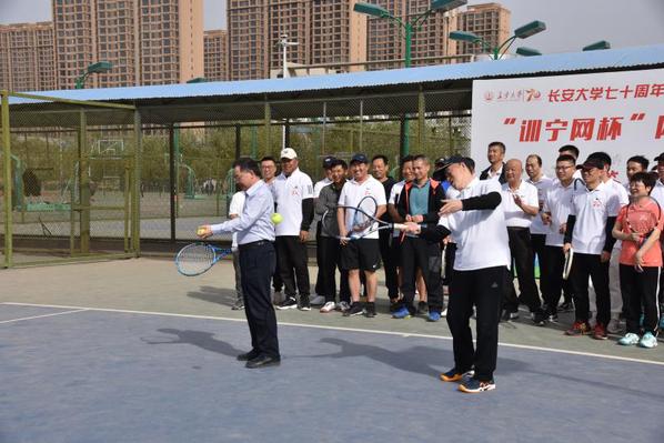 比賽開(kāi)幕式由長(zhǎng)安大學(xué)網(wǎng)球協(xié)會(huì)副會(huì)長(zhǎng)陳沛主持,副校長(zhǎng)趙祥模為比賽開(kāi)了球,并在致辭中表達(dá)了對(duì)長(zhǎng)安大學(xué)建校70周年的美好祝福,長(zhǎng)安大學(xué)網(wǎng)球協(xié)會(huì)名譽(yù)會(huì)長(zhǎng)王曉謀對(duì)校友們能在百忙中前來(lái)參賽表示誠(chéng)摯的感謝,現(xiàn)任會(huì)長(zhǎng)康敬東祝愿校友老師們賽出水平、賽出風(fēng)格、賽出友誼。此次網(wǎng)球聯(lián)誼賽獲得了校友企業(yè)南京交投信息技術(shù)有限公司以及王少鋒校友個(gè)人贊助。