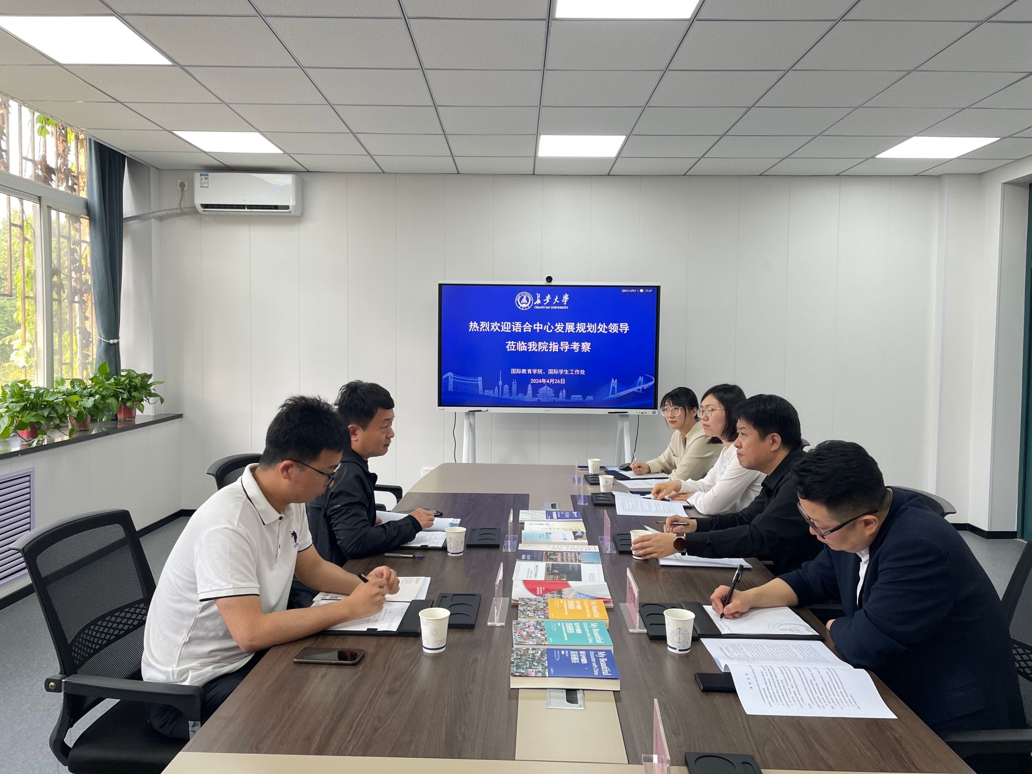 會后,王甬一行參觀了國際教育學(xué)院對外漢語培訓(xùn)中心,對國際學(xué)生預(yù)科培養(yǎng)、優(yōu)質(zhì)網(wǎng)絡(luò)課程建設(shè)、HSK考點(diǎn)建設(shè)等提出了具體指導(dǎo)建議。