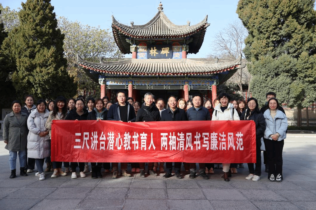 為進一步深化學習貫徹習近平新時代中國特色社會主義思想主題教育成果,切實加強廉潔教育,夯實清正廉潔思想根基,厚植廉潔奉公文化基礎,培養廉潔自律道德操守,12月6日下午,外國語學院黨委赴西安碑林博物館廉政教育基地開展以“三尺講臺潛心教書育人,兩袖清風書寫廉潔風范”為主題的黨風廉政教育活動。