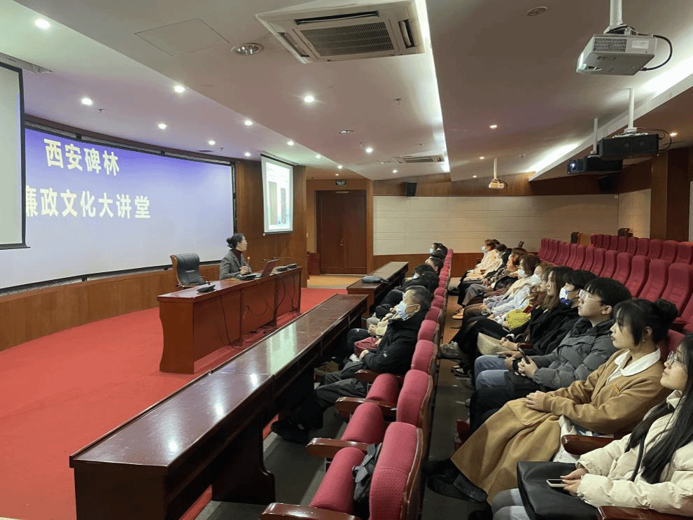 全體成員集中觀看廉政警示教育短片《清風正氣,鏤石成金》,并聆聽西安碑林博物館研究員樊波作題為《御史:天下之平一中國古代監察制度》的廉政文化講座,她以古代廉政文化為切入點,通過介紹唐朝御史臺監察機構、元代監察規章制度,講述“吏不畏吾嚴而畏吾廉,民不服吾能而服吾公。公則民不敢慢,廉則吏不敢欺,公生明,廉生威”的為官之道和“重民生而知根本,畏法度而能自律,明廉恥而守氣節”的做事原則。