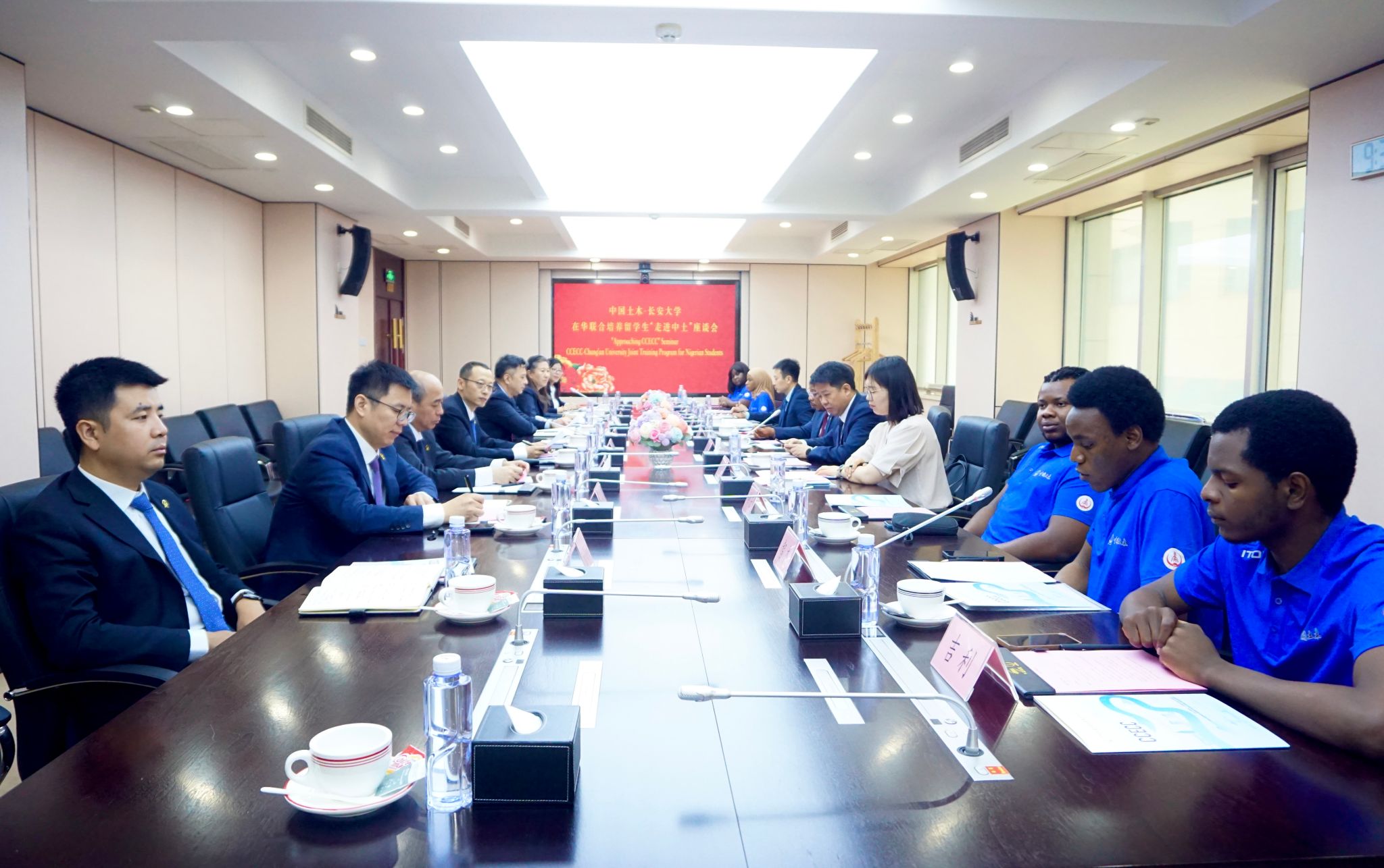 學(xué)校國際教育學(xué)院相關(guān)負(fù)責(zé)人,中國土木人力資源部、尼日利亞公司國內(nèi)支持部相關(guān)負(fù)責(zé)人參加座談會。