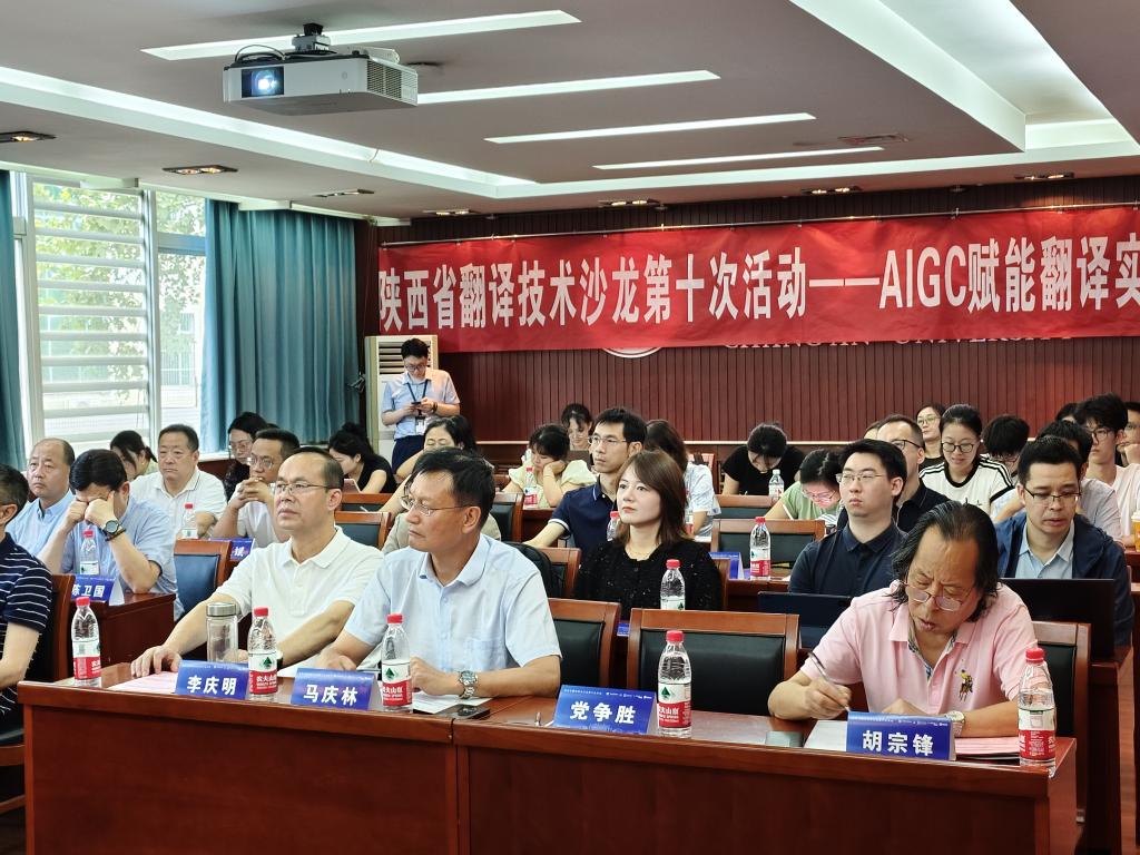 9月8日下午,由陜西省翻譯協(xié)會指導,長安大學外國語學院主辦的陜西省翻譯技術沙龍第十次活動在南校區(qū)學術交流中心成功舉辦。沙龍活動邀請行業(yè)資深專家和高校知名學者,圍繞AIGC賦能翻譯實踐與翻譯教學展開研討交流。來自北京外國語大學、西安外國語大學、西安理工大學、西北政法大學、西安財經(jīng)大學、西安石油大學、西安科技大學等省內(nèi)外十余所高校的外語學院院系領導及百余名翻譯專業(yè)師生線上線下同步參加了本次沙龍活動。開幕式由長安大學外國語學院院長馮正斌教授主持,西安外國語大學黨爭勝教授、陜西省翻譯協(xié)會主席胡宗鋒教授致歡迎辭。