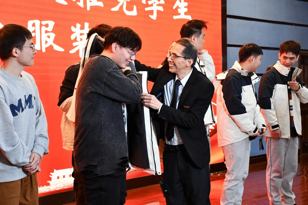 儀式上,學院為首屆推免生贈送紀念禮物。FWA教授與導師代表們依次為學院首批7名直博生和37名推免生穿上紀念定制服裝并合影留念。